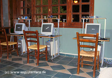 ![]() Internetcafé, Shisha-Bar, DiskoDas Internetcafe ist nicht so berauschend. ziemlich kühl eingerichtet und die Preise sind zu hoch (vergessen wieviel genau). Man sollte sich jedenfalls die Stoppuhr genau angucken, ob die auch richtig läuft![]() In der Disco waren wir nicht, wir haben uns aber sagen lassen, dass dort eh nichts los sei. Die Leute kämen kurz rein, guckten sich um und gingen dann wieder. Eine rechte Stimmung kam da wohl nicht auf. Liegt vielleicht auch daran, dass die Drinks dort nicht im All-Inclusive-Angebot mit drin sind. Das gleiche gilt für die Shisha-Bar. Wir sind des öfteren dran vorbei gegangen und die Leute, die wir durch die Fensterscheibe beobachten konnten sahen ziemlich gelangweilt aus. Mag daran liegen, dass diese Shisha-Bar (wo man übrigens, wie der Name schon sagt Shisha, also Wasserpfeifen rauchen kann) ein großer kalter Raum mit hohen Decken ist und überhaupt nicht gemütlich wirkt. Auch das dortige Angebot ist nicht im All-Inclusive-Angebot eingeschlossen. |
