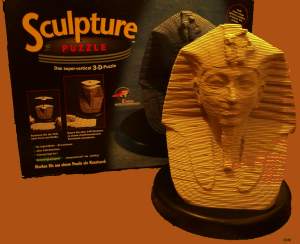 Sculpture Puzzle "Pharaonen-Büste"- 140 TeileEin etwas anderes Puzzle. Auf einen senkrechten Führungsstab werden Pappscheiben übereinander geschichtet, so dass eine 3-D-Skulptur entsteht. Ich fand es zu einfach, denn ich hatte es bereits an einem Tag ohne Fuschen und ohne Anleitung fertig. Es soll jedoch auch Leute geben, die dafür länger brauchen. Ich denke, für den Preis sollte man auch etwas länger beschäftigt sein. Es ist jedenfalls nett anzusehen, wenn es dann ferig ist und man kann es gut ins Regal stellen. |