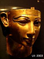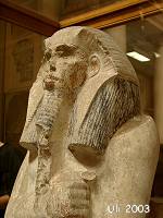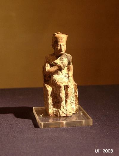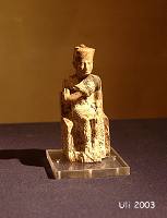 Diese kleine, nur 7,5 cm große Figur ist die einzigste bisher gefundene Nachbildung des berühmten Pharaos Cheops, dem Erbauer der großen Cheopspyramide in Gizeh. Bild vergrößern