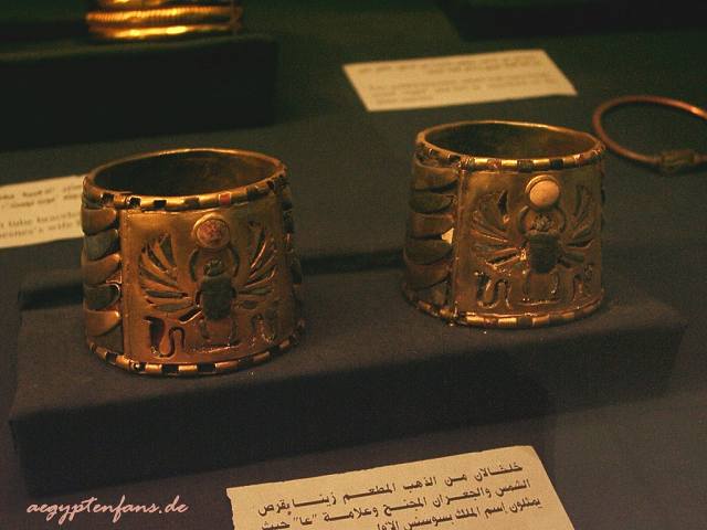 Auch dieser schöne Armreif befand sich an der Mumie von Scheschonk II, er hatte ihn von Scheschonk I geerbt. Bild vergrößern