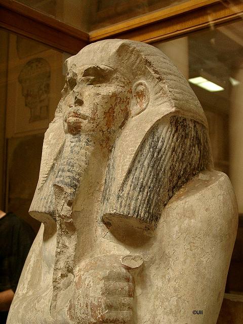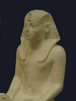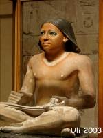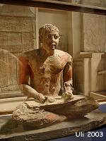 Statue des Prinzen Kauab dargestellt als Schreiber. Kauab lebte in der Zeit Cheops. In der rechten Hand hatte er ursprünglich eine Schreibbinse. Bild vergrößern