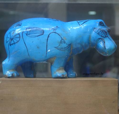 Dieses blaue Nilpferd ist recht bekannt und Nachbildungen von ihm werden auch auf Basaren verkauft. Solche Nilpferde wurden häufig in den Gräbern gefunden. Bild vergrößern