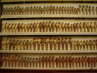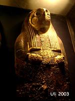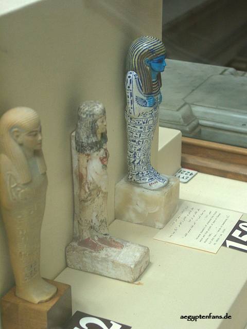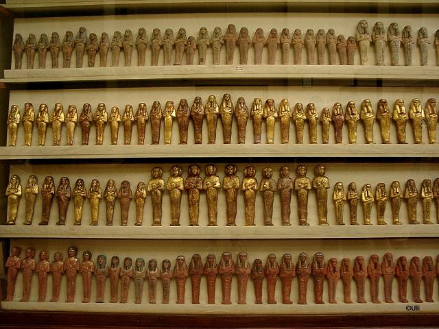 Ein Schrank voller Uschebtis. Uschebtis sind kleine Püppchen, die dem Verstorbenen mit ins Grab gegeben werden. Sie erwachen zum Leben und dienen dem Toten (ägyptische Heinzelmännchen sozusagen). Bild vergrößern