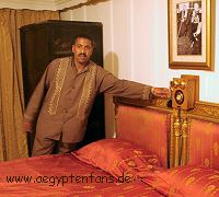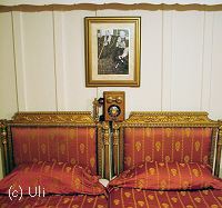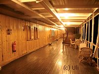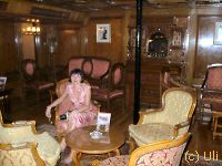 Die Zimmer die man uns zeigte sind eigentlich nur sowas wie Museumskabinen. Dort übernachtet heutzutage wohl niemand mehr. Trotzdem waren Anke und ich uns einig, dass eine Reise auf diesem Schiff wohl nicht das wahre für uns wäre. Die neu gemachte Holzverkleidung (im Film war das Schiff noch weiß gestrichen) sieht zwar sehr schön aus, aber ansonsten wirkt das Schiff ziemlich antiquiert. Und einen Pool gibts natürlich auch nicht. Aber das ist natürlich alles Geschmackssache. Zeljka war begeistert. Ihre abschließenden Worte mit glasigem, der heutigen Zeit entrückten Blick, nachdem wir die Sudan wieder verlassen hatten waren: "Seid Ihr auch so glücklich?" Es folgte ein lautes Gelächter... |