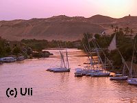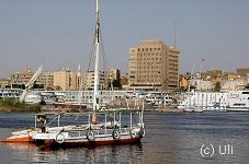 ![]() In Assuan liegt der erste Nilkatarakt. Ein Katarakt ist ein Stomschnellengebiet in dem keine Schiffe fahren können. Der Lauf des Nils wird hier von kleinen Felsen unterbrochen. Lediglich die wendigen Felukken können hier durch die engen Stellen navigieren. Bild vergrößern |