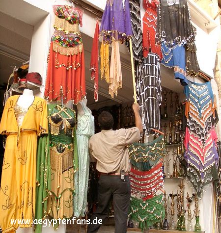 Zeljka handelt einen Händler für einen großen Messingteller-Tisch unerbittlich von 250 auf 170 Euro herunter. Petra findet ein tolles Bauchtanzkostüm, probiert dieses sogar an. Aber trotz der guten Qualität sind ihr 800 Pfund dann doch zu teuer und sie entschliesst sich stattdessen doch nur ein Bauchtanztuch für 70 Pfund zu kaufen. Nach ca. 2 Stunden verlassen wir den Basar mit Skarabäen, Karkade (Malventee) und Apfel- und Erdbeertabak für die Wasserpfeife. |