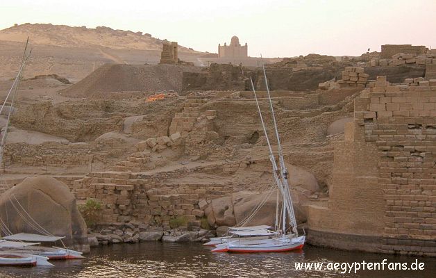 ![]() Mitten im Nil in Assuan liegt die Insel Elephantine auf der auch archäologische Ausgrabungen stattfinden. Hier stand früher ein Tempel, der dem altägyptischen Gott Chnum geweiht war. Bild vergrößern |