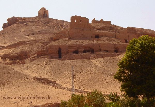 ![]() Am Westufer von Assuan liegen die Felsengräber in denen Gaufürsten und hohe Beamte aus der 6. bis 12. Dynastie bestattet wurden. Bild vergrößern |