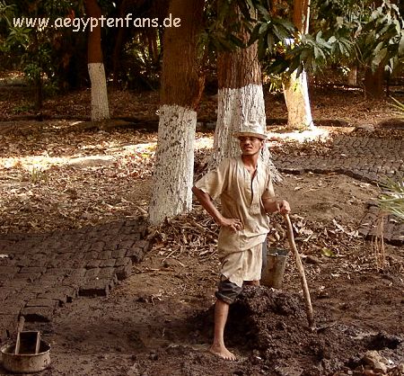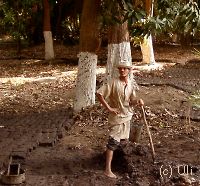 ![]() Dieser Dorfbewohner stellt noch in Handarbeit Lehmziegel für den Bau der Häuser her. Bild vergrößern |