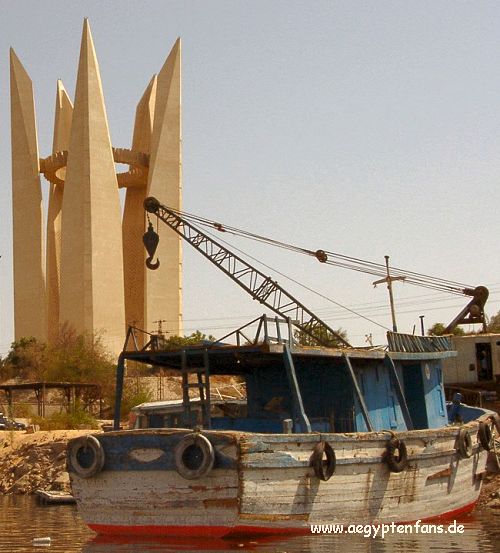 ![]() Dieses Denkmal ist ein Zeichen für die ägyptisch-sowjetische Freundschaft. Die Sowjets halfen beim Bau des Hochdammes. Bild vergrößern |