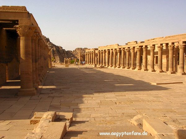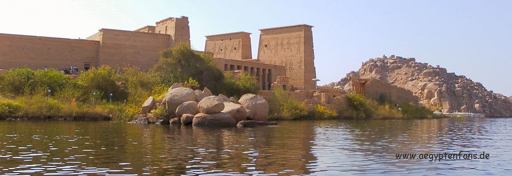 -------Ägypten-Wissen------ Der Philae-TempelDer Philae-Tempel ist einer der Tempel, die aufgrund des Staudamm-Baues versetzt werden mussten. Bereits nach dem Bau des alten Dammes stand der Tempel immer wieder unter Wasser. Nur jedes Jahr im August war er wasserfrei, nämlich dann wenn der Staudamm zum Wasserablassen geöffnet wurde. In den anderen Monaten ruderten die Touristen durch den Tempel. Man kann die Spuren der Überschwemmung noch heute deutlich an den Säulen erkennen. Als schließlich der Hochdamm gebaut wurde, ging die Insel Philae endgültig unter. Der Tempel wurde auf die höher gelegene Insel Agilika versetzt. |