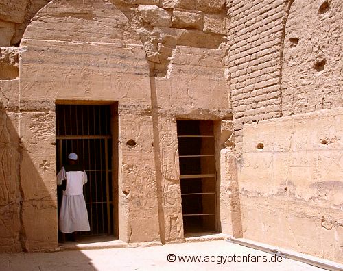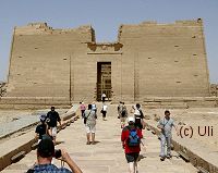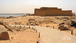 -------Ägypten-Wissen------ Der Kalabsha-TempelDer Tempel von Kalabsha war der erste nubische Tempel, der durch seine Versetzung vor den Fluten des Nassersees gerettet wurde. Er steht jetzt etwa 50 km von seinem ursprünglichen Standort entfernt. Mit Hilfe des Deutschen Archäologischen Instituts wurde der Tempel 1962 in etwa 15.000 Steinquader à 20 Tonnen zerlegt und hier fast direkt neben dem Assuanstaudamm wieder zusammen gesetzt. Als Dank für die Hilfe erhielten die Deutschen ein Tempeltor, das während der Umsetzungsarbeiten gefunden wurde und heute im Ägyptischen Museum in Berlin steht. |