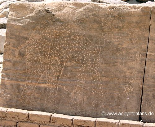 ![]() Hier stehen auch zwei Felsblöcke mit prähistorischen Zeichnungen. Hier sieht man einen davon mit einem in Stein gehauenen Elefant. Bild vergrößern |