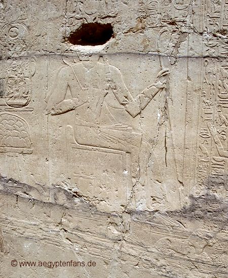 ![]() Auf den meisten Reliefs ist die Isis unschwer zu erkennen. Sie trägt nämlich einen Stuhl auf dem Kopf. Bild vergrößern |