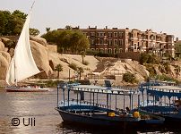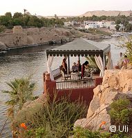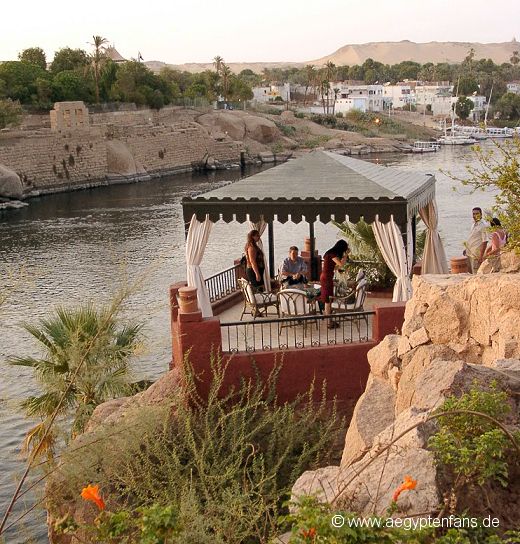30 Pfund hat es gekostet. Dafür konnte man sich im Terassenbereich des Hotels aufhalten und man durfte diese 30 Pfund auch "verzehren". Es gab Getränke und Kuchen und das zu ganz normalen Preisen. Lediglich die große überdachte Terasse, wo zwei Musiker mit Gitarrenklängen für Unterhaltung sorgten, war den Hotelgästen vorbehalten. Aber es gab noch andere gemütliche Plätze, wo man den Blick auf Assuan genießen konnte. |