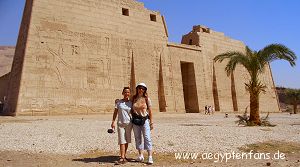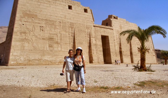 Wir liefen also zurück zu unseren Rädern und nach einem Einkauf am Tickethäuschen, wo man für die meisten Sehenswürdigkeiten auf der Westseite Eintrittskarten bekommt, fuhren wir zum Tempel Medinet Habu. |