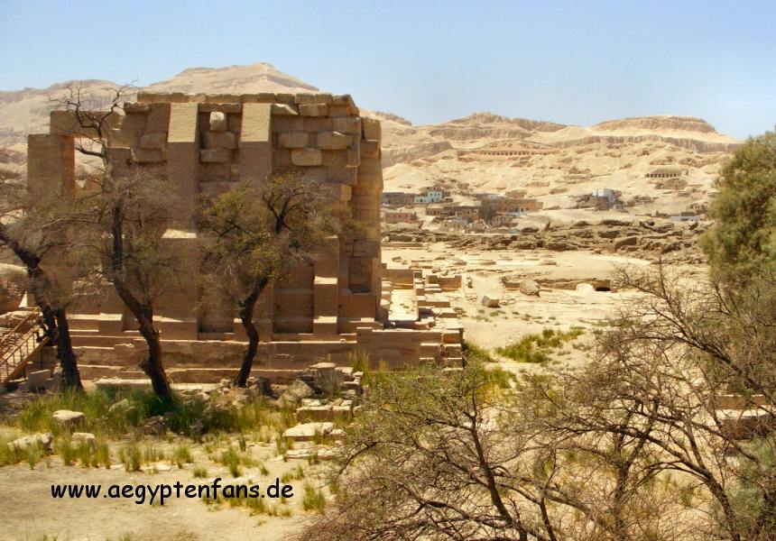 ![]() Der Tempel von Merenptah vor dem Grabräuberdorf Kurna (das 2007 abgerissen wurde) Bild vergrößern |