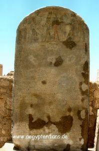 ![]() Diese Stele ist kein Original. Das Original der so genannten "Israel-Stele" (im Text ist der Name "Israel" drin) steht im Ägyptischen Museum in Kairo. Bild vergrößern |