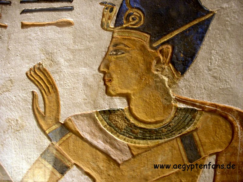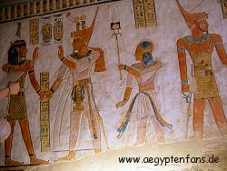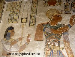 ![]() Auch Amunherchepeschef war ein Sohn von Ramses III. Hier sieht man ihn zusammen mit seinem Vater. |