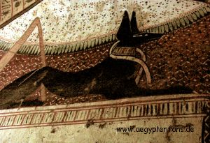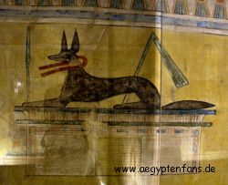 ![]() Anubis sitzt auf dem Grab von Chaemweset. |