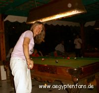 Abends gings dann wieder ins wilde Nachtleben von Luxor. Wasserpfeife und Ouzo im Mercure-Etap. Uli testete, wie gut Ägypter Billiard spielen können, und danach gings auch dort in die hauseigene Disco. Diesmal war wieder erst mitten in der Nacht irgendwann Schluß. Wir waren gespannt, ab wann sich der Schalfmangel auswirken würde. Noch gings uns ja blendend... | ![]() In Ägypten wird es früh dunkel. |