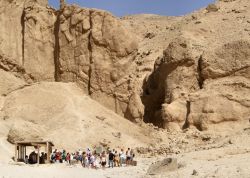 ![]() Riesige Felsformationen umgeben das Tal der Königinnen. Hier soll es etwa 90 Gräber geben. |