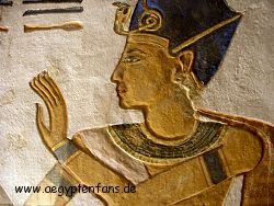 ![]() Im Tal der Königinnen sind nicht nur Königinnen begraben, sondern auch Prinzen und Prinzessinen. Ein solcher Prinz war Chaemweset, ein Sohn von Ramses III. Bild vergrößern |