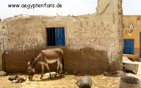 Tag 4: Tal der Königinnen, Peschedu und Sethos I.Der Totentempel von Sethos I war uns was zu weit mit dem Fahrrad, daher hatte uns Gamal für den 4. Tag einen Fahrer besorgt. Der fragte uns direkt zu Beginn, ob wir lieber den direkten Weg nehmen wollten, oder ob er uns über die Dörfer fahren sollte. Den kleinen Umweg machten wir natürlich gerne. Und so ging es vorbei an diversen Lehmziegelhäusern, uns liefen Hühner und Esel über den Weg und Frauen standen am Wegrand, die gerade ihre Wäsche wuschen.Unser erstes Ziel war das Tal der Königinnen. |